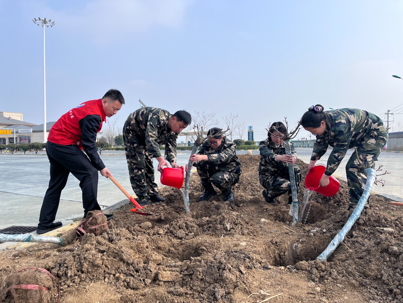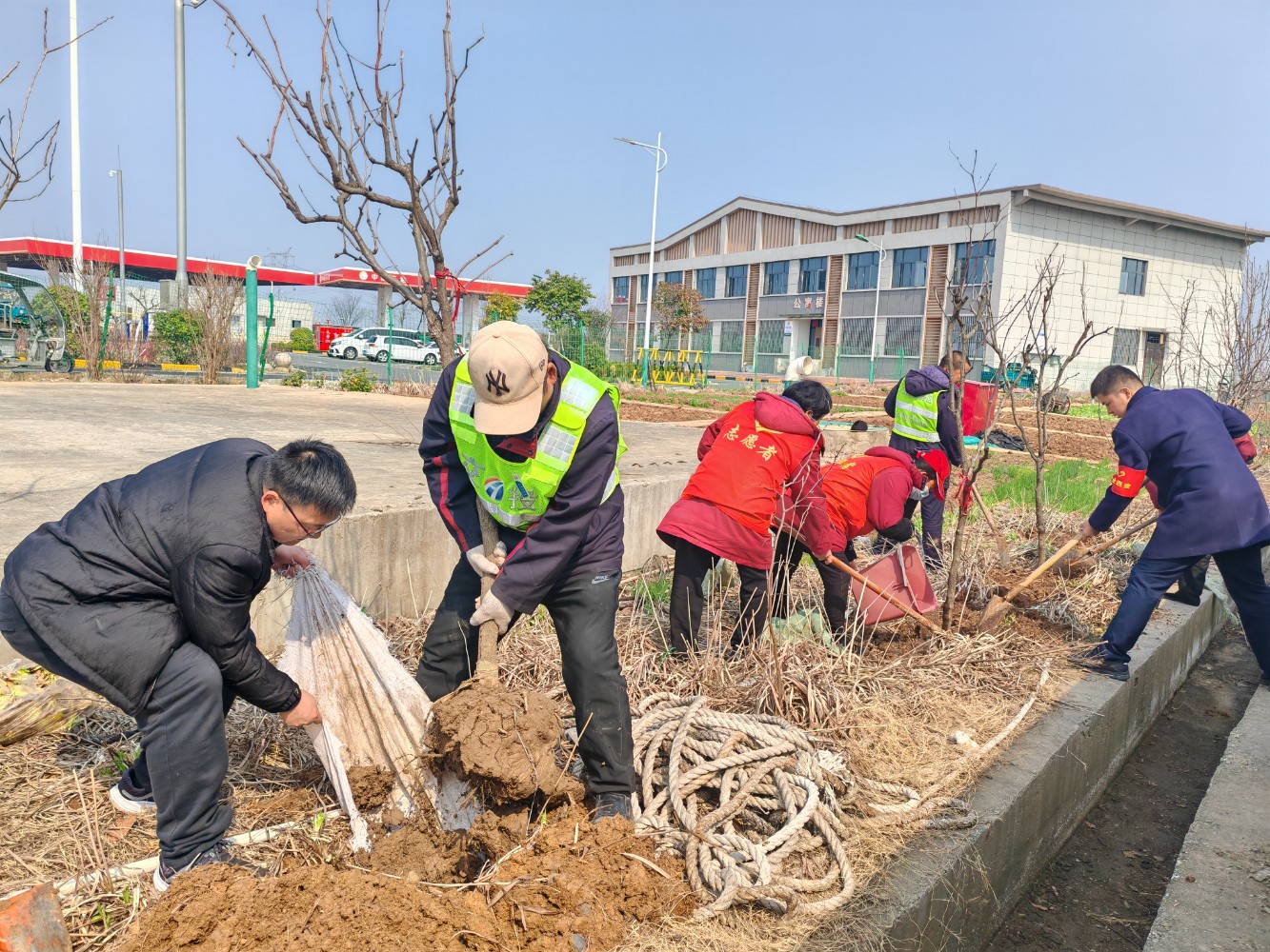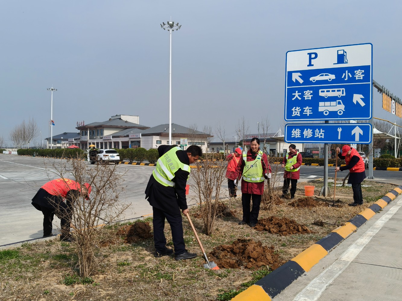 活動(dòng)中,大家熱情高漲、干勁十足,手持鋤頭、鐵鏟、水桶等工具,有的揮鍬鏟土,有的扶苗填坑,將一棵棵樹苗植入泥土,現(xiàn)場(chǎng)一片熱火朝天的繁忙景象。經(jīng)過(guò)一番精心勞作,一棵棵新栽種的樹苗迎風(fēng)而立,為初春的服務(wù)區(qū)增添了勃勃生機(jī)的綠意。本次活動(dòng)有效提升了大家植綠、護(hù)綠、愛(ài)綠的意識(shí),美化充實(shí)了員工生活,下一步,公司將持續(xù)秉承綠色發(fā)展理念,持續(xù)關(guān)注生態(tài)環(huán)境保護(hù),積極開展各類環(huán)保活動(dòng),為過(guò)往司乘安全健康出行保駕護(hù)航。