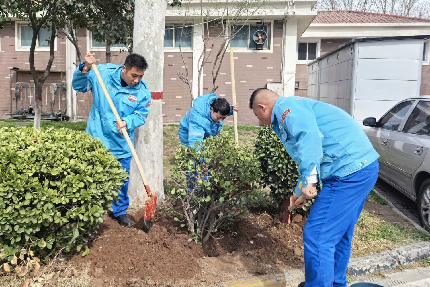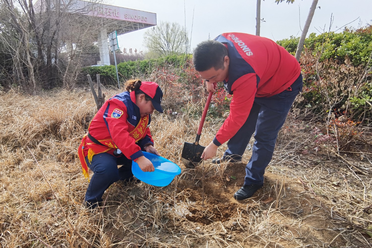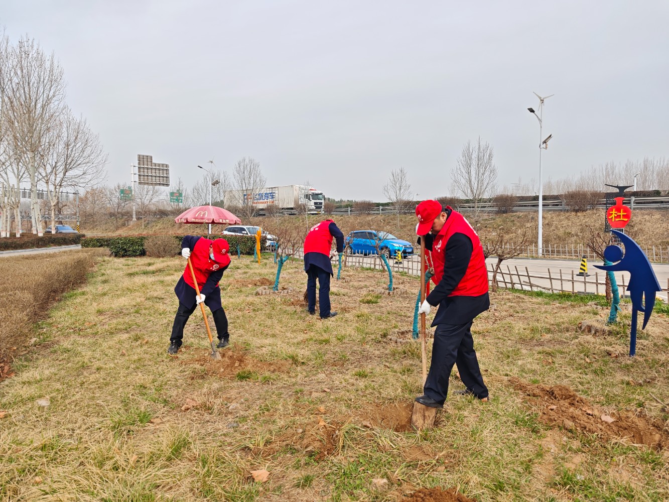 活動(dòng)中,大家熱情高漲、干勁十足,手持鋤頭、鐵鏟、水桶等工具,有的揮鍬鏟土,有的扶苗填坑,將一棵棵樹苗植入泥土,現(xiàn)場(chǎng)一片熱火朝天的繁忙景象。經(jīng)過(guò)一番精心勞作,一棵棵新栽種的樹苗迎風(fēng)而立,為初春的服務(wù)區(qū)增添了勃勃生機(jī)的綠意。本次活動(dòng)有效提升了大家植綠、護(hù)綠、愛(ài)綠的意識(shí),美化充實(shí)了員工生活,下一步,公司將持續(xù)秉承綠色發(fā)展理念,持續(xù)關(guān)注生態(tài)環(huán)境保護(hù),積極開展各類環(huán)保活動(dòng),為過(guò)往司乘安全健康出行保駕護(hù)航。