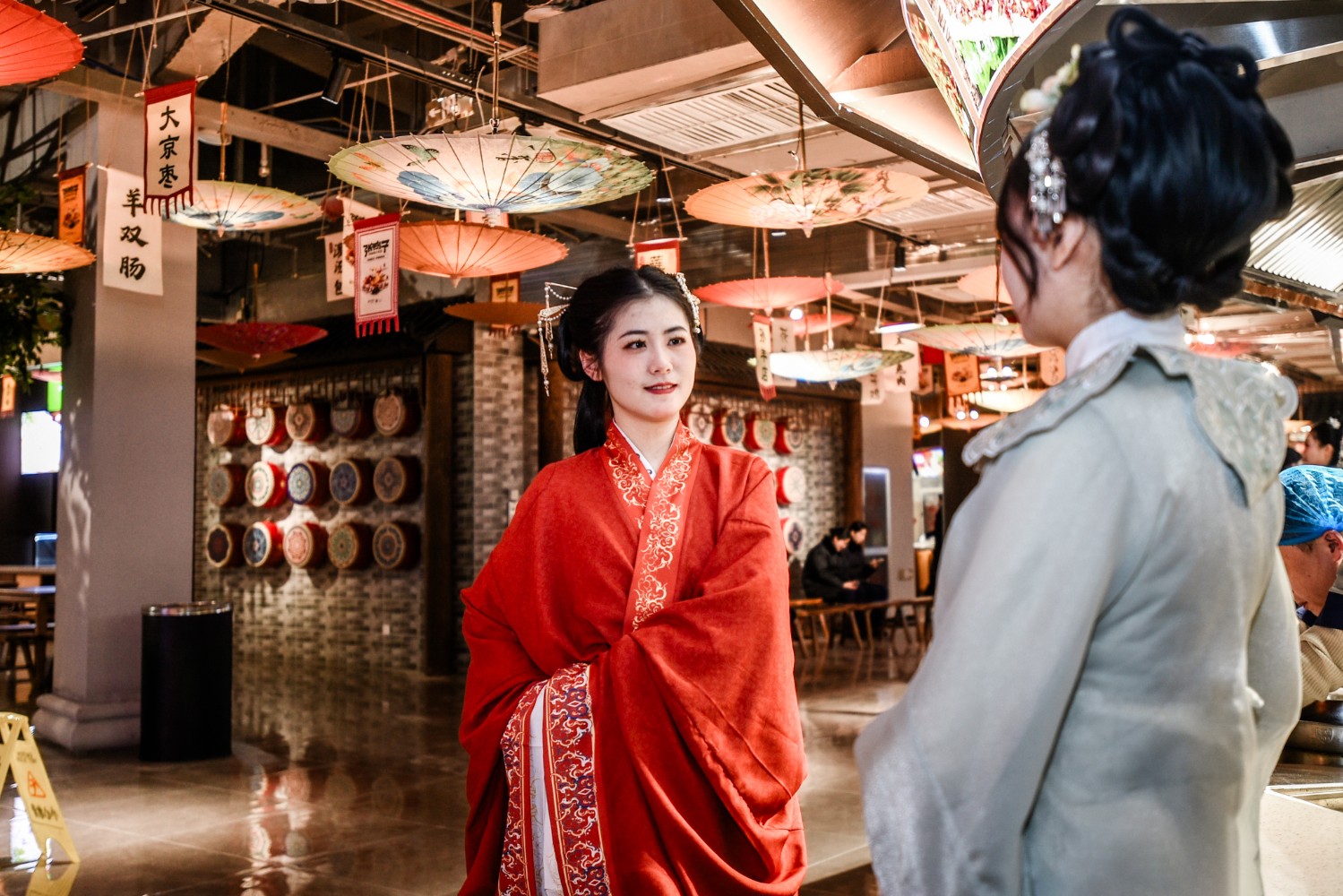 上河坊牌樓、宋服館、戲臺(tái)、平樂坊等“出片”打卡點(diǎn),讓旅客在緩解疲勞的同時(shí),開啟一場(chǎng)跨越時(shí)空的文化邂逅,不進(jìn)開封城即可體驗(yàn)開封城。